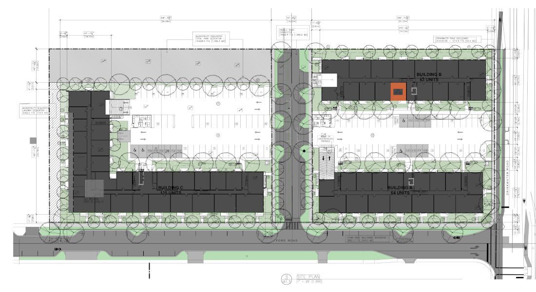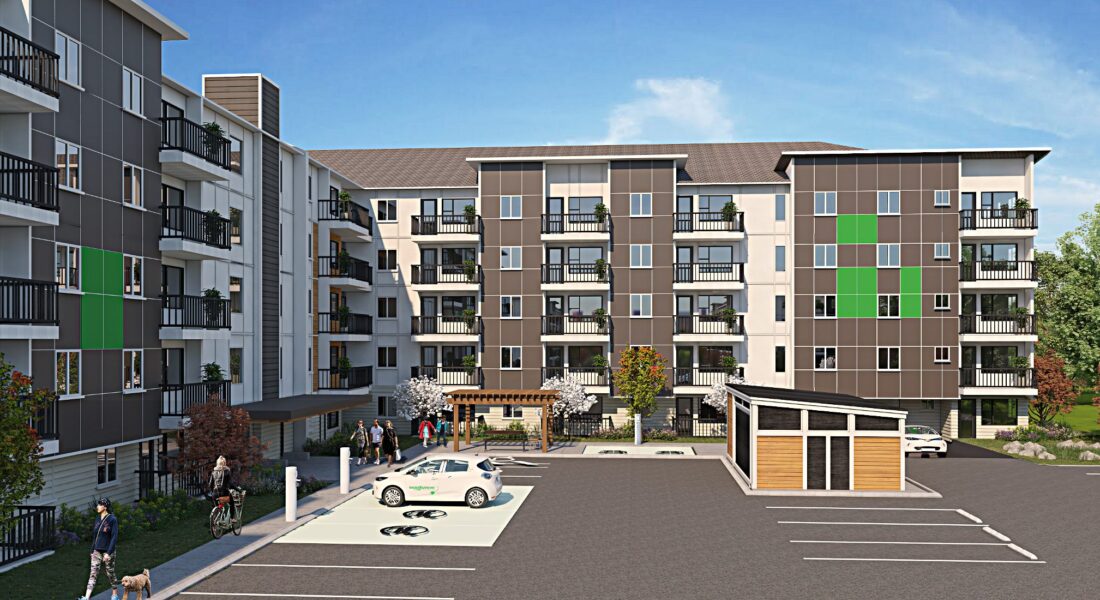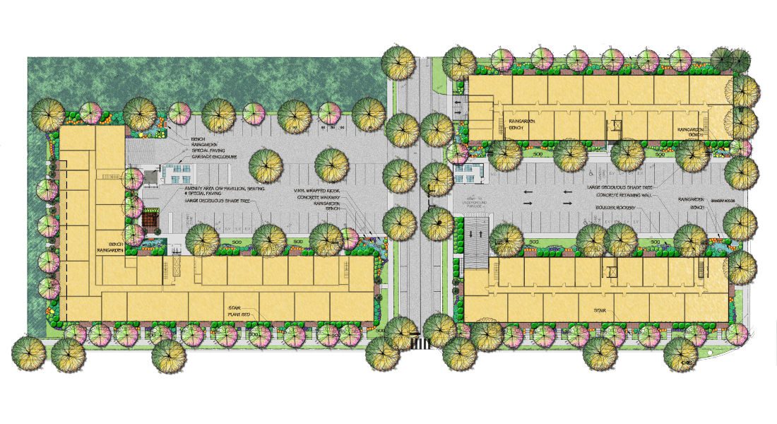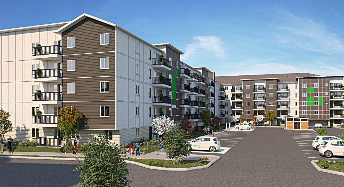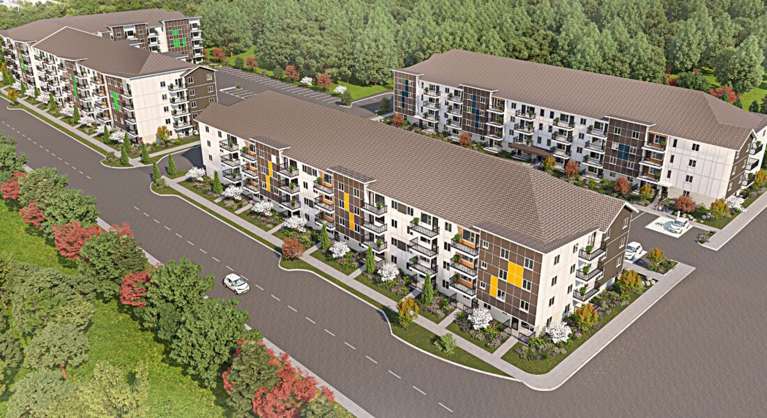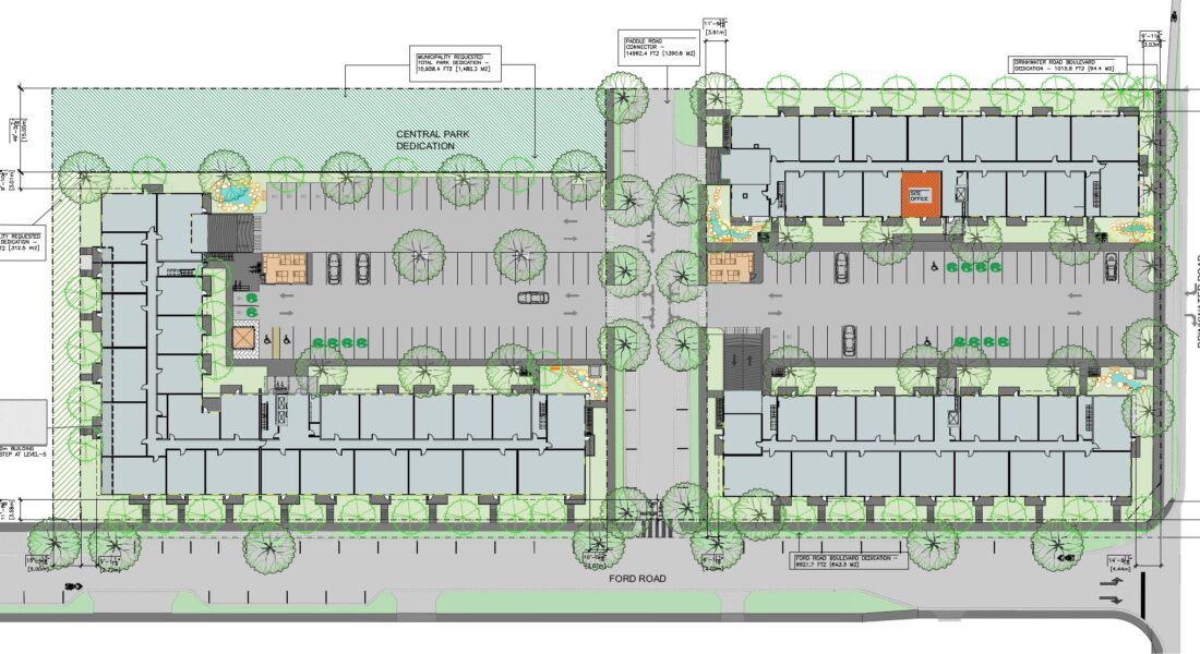 A rezoning process has been initiated for the site to accommodate four new multi-family buildings with 262 suites. Each building will be 4 storeys with 1 level of underground parking and will include a range of 1, 2, and 3 bedroom suites.